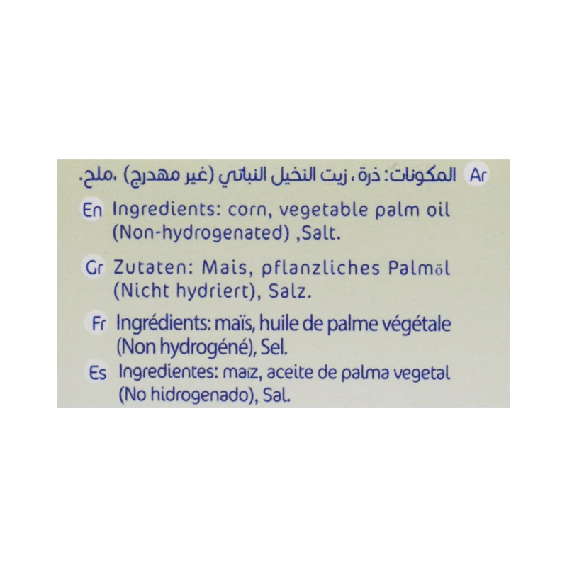 ذرة , زيت النخيل النباتي ( غير مهدرج ) ملح , نكهة الزبدة الصناعية .