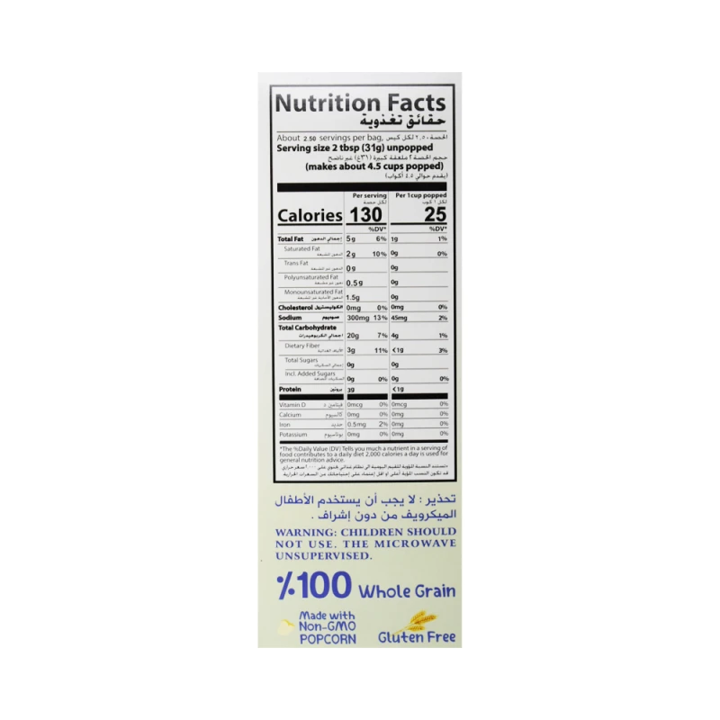 Average values Per Serving 82g القيم المتوسطة لكل 82 غرام |