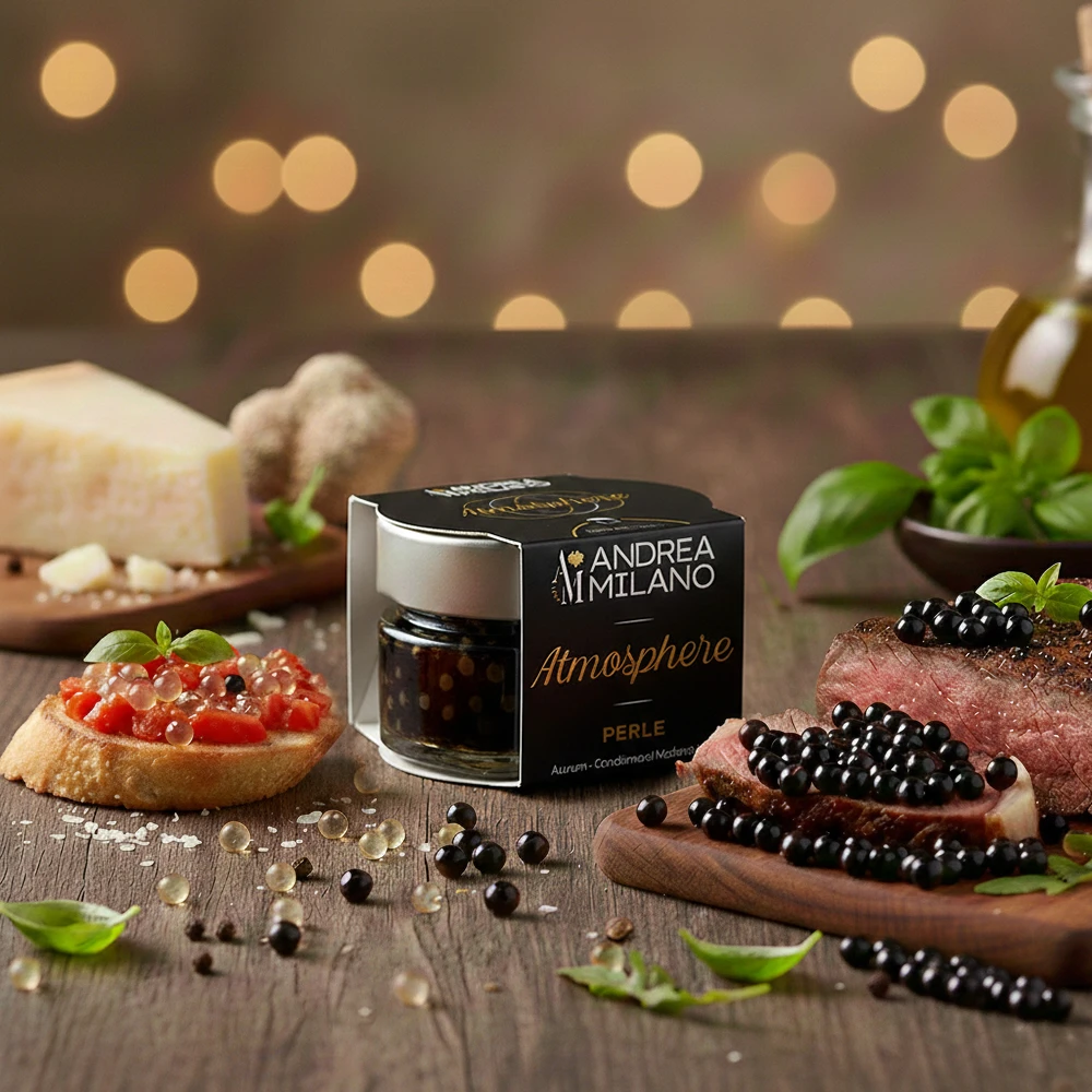 لؤلؤات Atmosphere مصنوعة من عصير العنب المركز، وبفضل مهارة عائلة ميلانو تتحوّل إلى ما يعادل "كافيار مودينا".