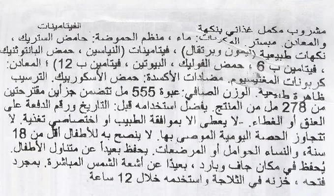 مشروب غازي نكهة العنب الاحمر وفاكهة التنين معزز بالفيتامينات والزنك واليود يحتوي على مادة محلية