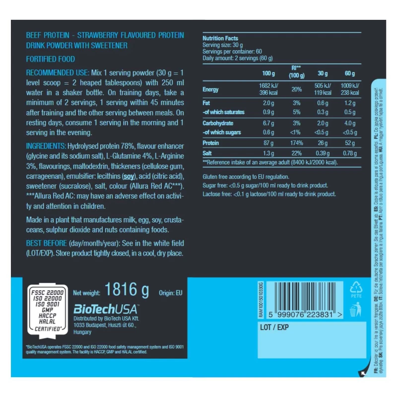 مثل جميع منتجات BioTech USA، يتكون بروتين البقر من مكونات آمنة ومختارة بعناية.