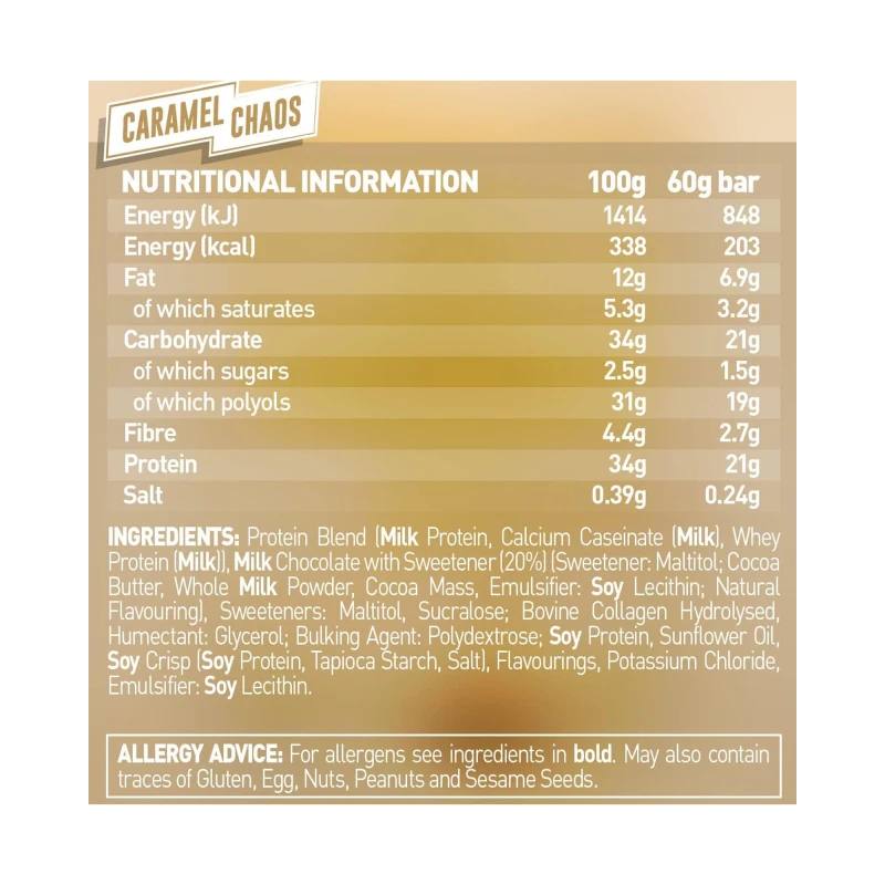 لوح الكراميل هذا مليء بـ 21 جرام من البروتين ويتميز بمزيج قوي فريد من الكراميل اللزج والقطع المقرمشة وطبقة شوكولاتة الحليب اللذيذة. تم تقديمه كأول لوح بروتين Grenade في عام 2015، وقد أحدث لوح بروتين Caramel Chaos ثورة في لعبة الوجبات الخفيفة الصحية ويستمر في القيام بذلك حتى اليوم!