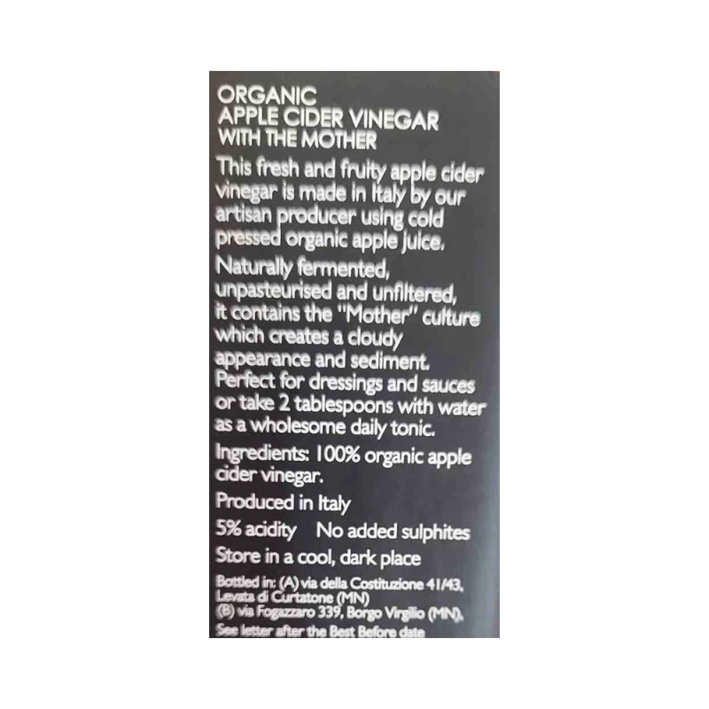 يتم صنع خل التفاح الطازج والفواكه هذا في إيطاليا بواسطة منتجنا الحرفي باستخدام عصير التفاح العضوي المضغوط على البارد. مخمر بشكل طبيعي ، غير مبستر وغير مفلتر ، يحتوي على ثقافة "الأم" التي تخلق مظهرًا غائمًا ورواسب.