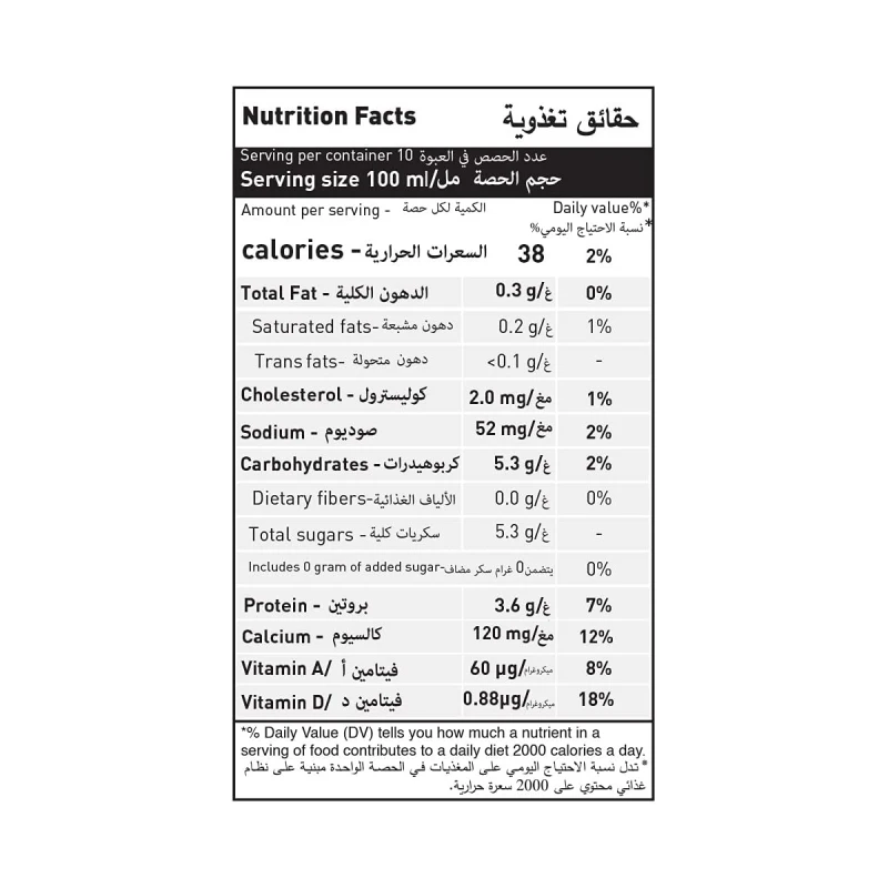 حليب أبقار عضوي منزوع الدسم ، 0.3٪ دسم حليب ، كحد أدنى. 8.5٪ مواد صلبة غير دهنية