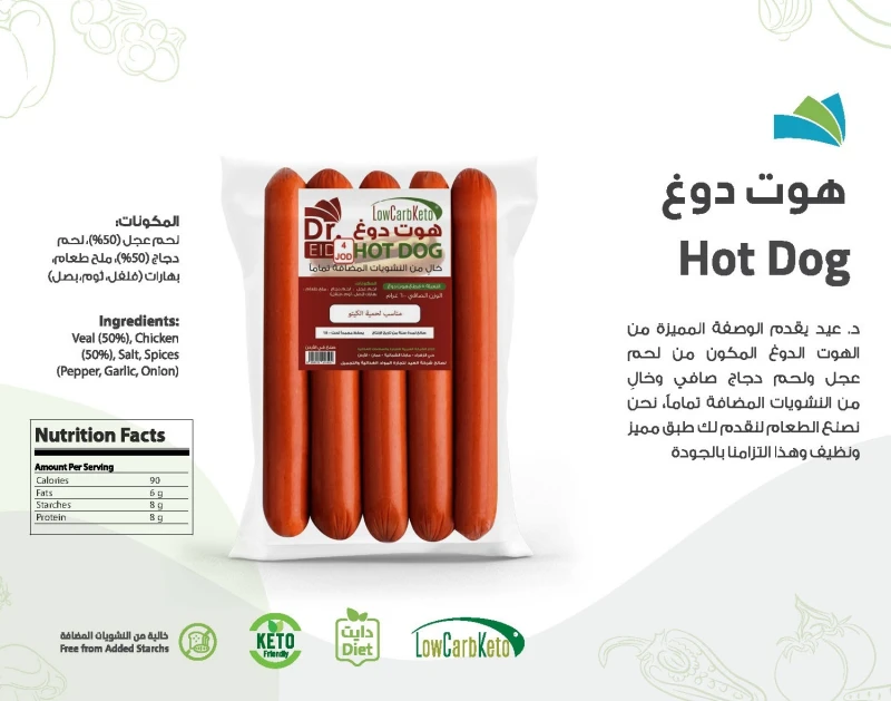 المكونات: لحم عجل 50% لحم دجاج 50% ، ملح طعام ، بهارات ( ثوم ، بصل ، فلفل )