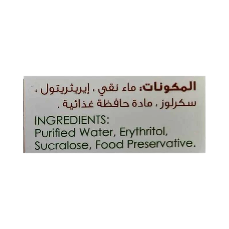 ماء نقي، إريثريتول، ستيفي، مادة حافظة غذائية.