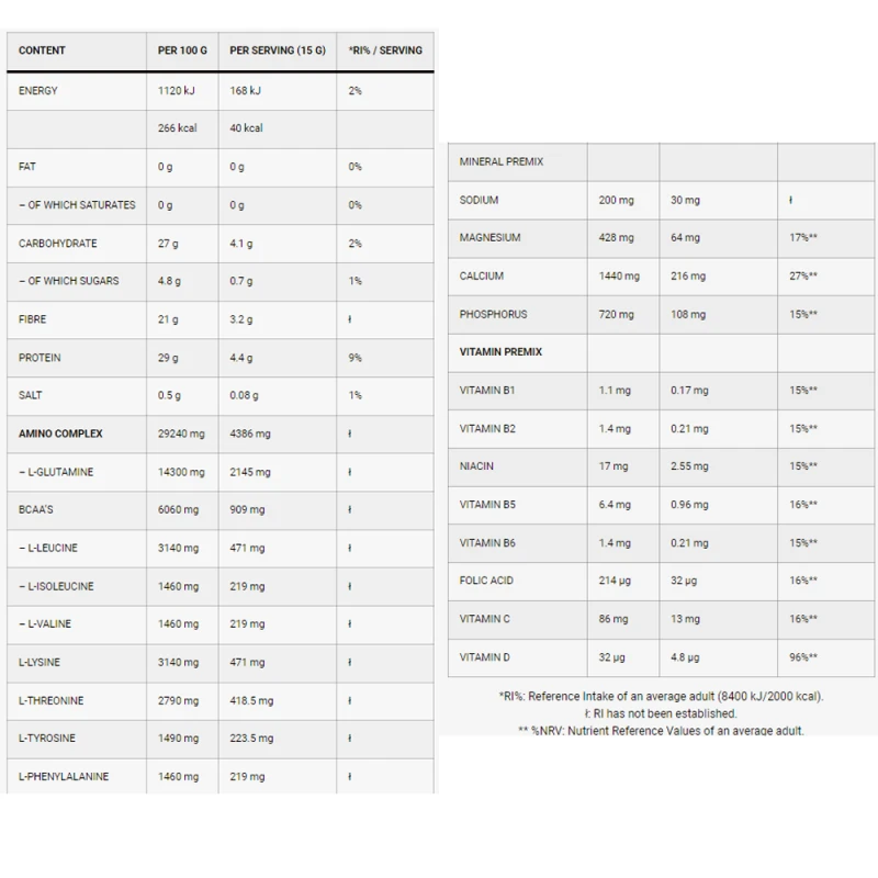 يوفر هذا المنتج مزيجًا من الأحماض الأمينية الأساسية، بما في ذلك BCAAs، والتي تعتبر ضرورية لإصلاح العضلات ونموها. من خلال تجديد هذه الأحماض الأمينية، فإنه يسرع عملية تعافي العضلات بعد التمرين، مما يسمح بنمو أسرع للعضلات وتقليل الألم.
