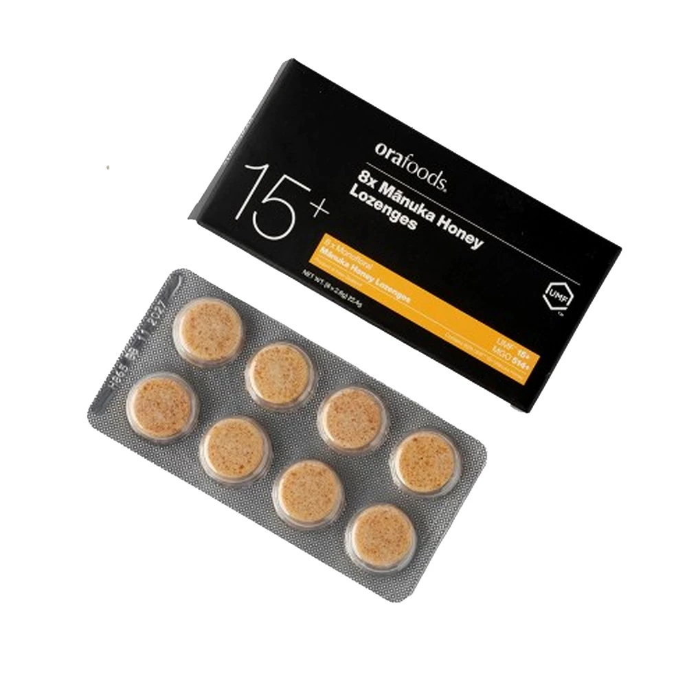 هذه الحلوى يتمتع العميل بطعمها اللذيذ وفوائد عسل المانوكا الفريدة وهي رائعه في تلطيف التهاب الحلق و تخفيف اعراض الانفلوانزا