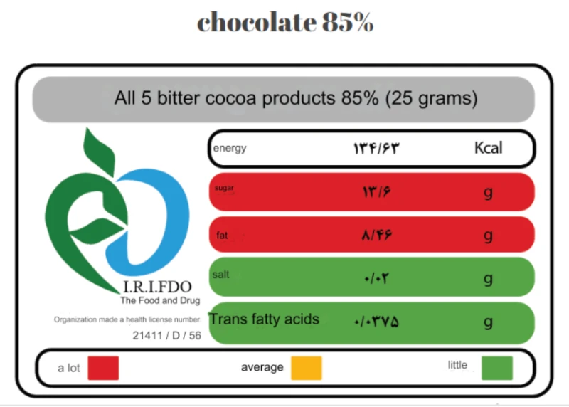 القيمة الغذائية في25  جرام من الشوكولاتة الداكنة