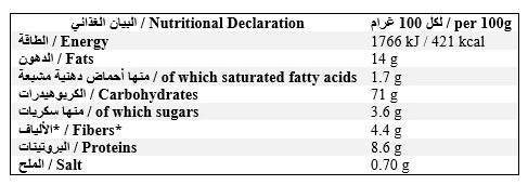 قد يحتوي على فول الصويا، واللوز، والبندق، والجاودار، والخردل