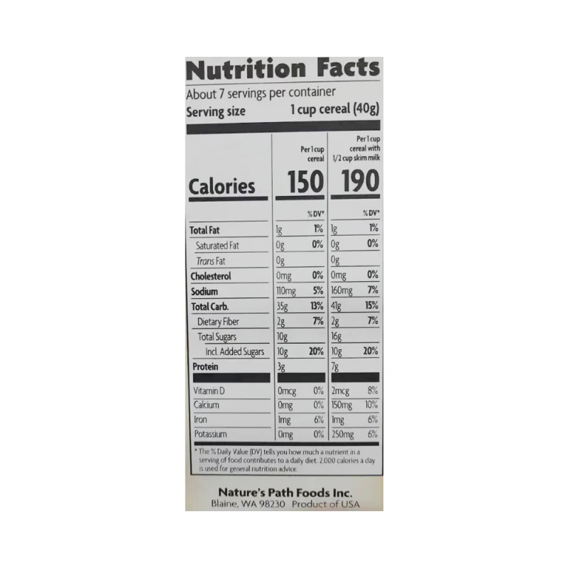 Nature's Path Organic ™ . لا تستخدم نكهات صناعية أو ألوان أو مواد حافظة. تُصنع الحبوب والوجبات الخفيفة من Nature's Path من أفضل المكونات العضوية التي تزرع في انسجام مع الطبيعة في مزارع عضوية صحية.