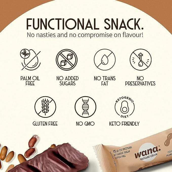 مثالية للأشخاص أثناء التنقل - تناول الطعام على قضبان الإفطار الغنية بالبروتين سواء كنت تعمل أو تسافر أو ترغب فقط في إرضاء أسنانك الحلوة. Wana Waffand’Cream للوجبات الخفيفة تقدم أيضًا تمرينًا ممتازًا قبل التمرين أو بعد التمرين.