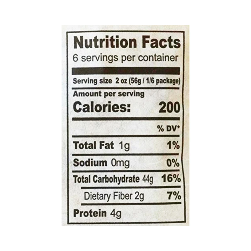 المكونات: أرز كامل الدسم (36%)، ذرة صفراء (32.5%)، ذرة بيضاء (20%)، أرز (8%)، نشا البطاطس (3%) - غير معدل وراثيًا وكوشير
