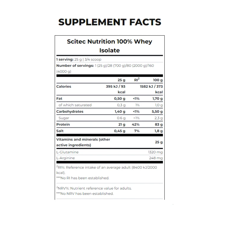 100% مصل اللبن المعزول هو بروتين عالي الجودة من مصل اللبن المعزول ومدعم بامتصاص أسرع لمصل الماء. هذه الصيغة تحتوي على نسبة أقل من الكربوهيدرات من أي وقت مضى! بشكل عام، يتم إنتاج بروتينات مصل اللبن "المعزولة" بحيث تحتوي على نسبة مئوية أعلى من البروتين من مصل اللبن "المركزات"، وهو ما يعني أيضًا ذلك "الأخير" يحتوي على نسبة سكر أقل (بما في ذلك اللاكتوس) ومحتوى دهني! البروتينات الغذائية هي مصدر النيتروجين والأحماض الأمينية الأساسية التي يحتاجها الجسم لنمو الأنسجة والحفاظ عليها. لذلك، يساهم مصل اللبن المعزول بنسبة 100% في نمو كتلة العضلات والحفاظ عليها، وكذلك في الحفاظ على العظام الطبيعية*. يُطلق على بروتين مصل الحليب اسم البروتين الكامل، لأنه يزود الجسم بجميع أنواع الأحماض الأمينية الضرورية، بما في ذلك الأحماض الأمينية التسعة، لا يستطيع الجسم تصنيعها ويجب توفيرها عن طريق النظام الغذائي (مثل الهيستيدين واليوسلين). ، ليوسين، لوسين، ميثيونين، رينيللانين، ثريونين، تريوتورهان، فالين).