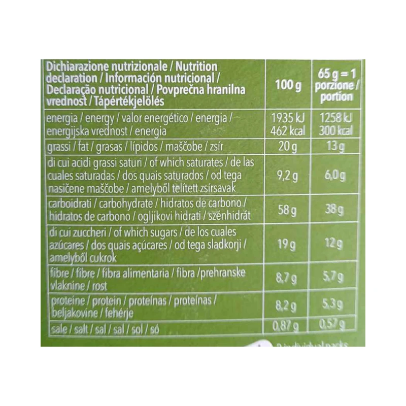 (رقائق الشوفان، دقيق الشوفان، نخالة الشوفان)، سكر قصب خام، دهن النخيل، زبدة (حليب)، شراب الأرز، جنين الأرز، نخالة الأرز، نشا الذرة المعدل، نشا الأرز، مواد رافعة: كربونات هيدروجين ثنائي الأمونيوم، كربونات هيدروجين الصوديوم، نكهة فانيليا طبيعية، ملح.قد يحتوي على آثار من:الصويا والترمس.