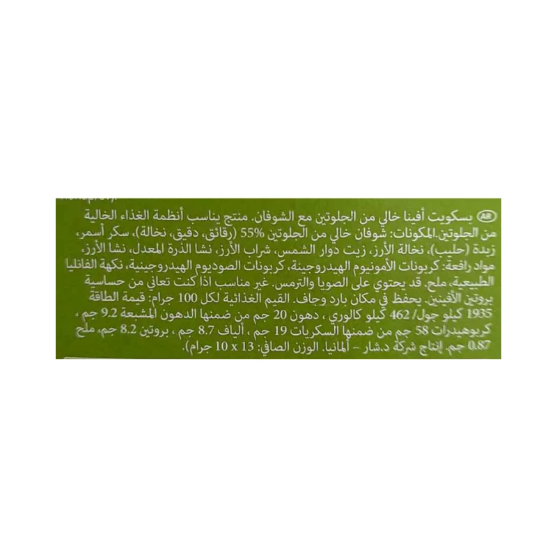 المنتج غير مناسب لمن لديهم حساسية من بروتين الأفينين (وهو بروتين موجود في الشوفان).
