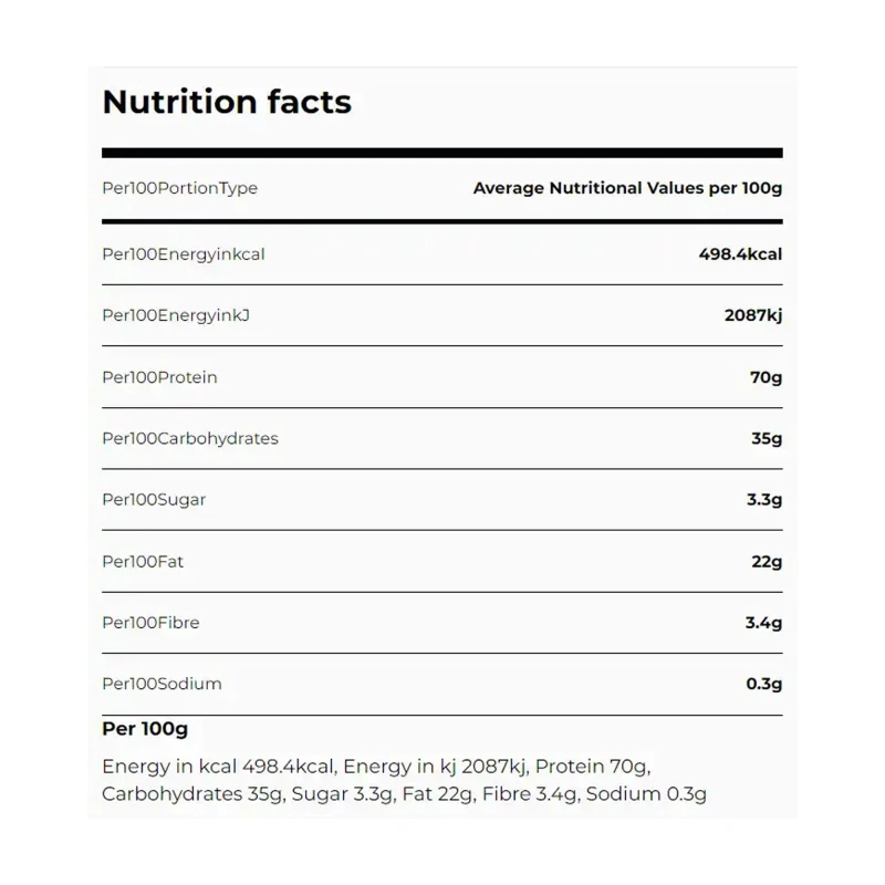 Average values per 100g القيم المتوسطة لكل 100 غرام |