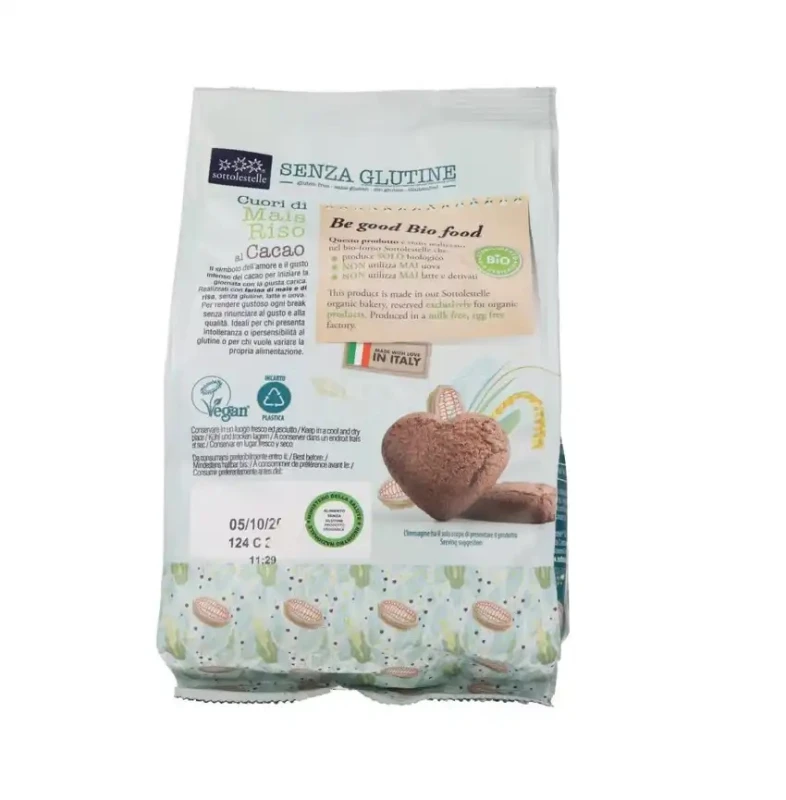 رمز الحب ومذاق الكاكاو المكثف لبدء اليوم بالطاقة المناسبة. مصنوع من دقيق الذرة والأرز، خالي من الغلوتين والحليب والبيض. لجعل كل استراحة لذيذة دون التضحية بالطعم والجودة. مثالي لأولئك الذين يعانون من عدم تحمل أو فرط الحساسية للجلوتين أو لأولئك الذين يرغبون في تغيير نظامهم الغذائي.