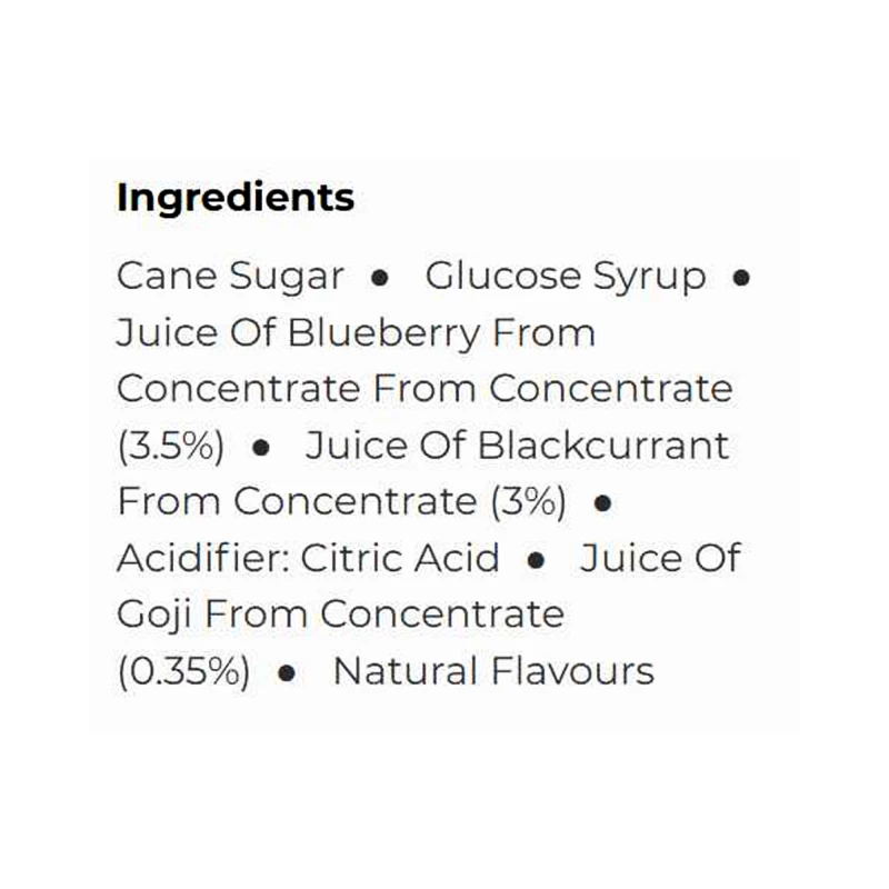 حلوى عضوية إيطالية طبيعية بالكامل مصنوعة من التوت والكشمش الأسود وتوت الغوجي