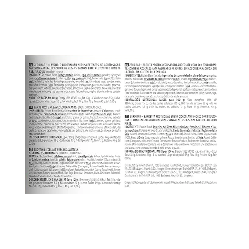 معبأ بالبروتين: يوفر Zero Bar محتوى بروتين معقد يبلغ 20 جرامًا وسكرًا منخفضًا وبدون طلاء، مما يجعله مثاليًا للأنظمة الغذائية والتدريبات.